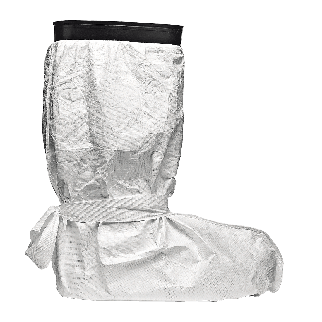 Tyvek shoe covers, height 48 cm, it features two strings to be tied to coverall or trousers or ankles. Pack of 100 pieces.