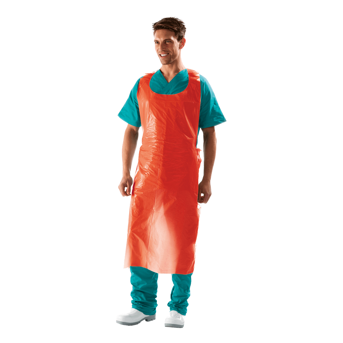 Apron in polyethylene, 0.025 mm thick, 81x135 cm. Pack of 50 pieces.