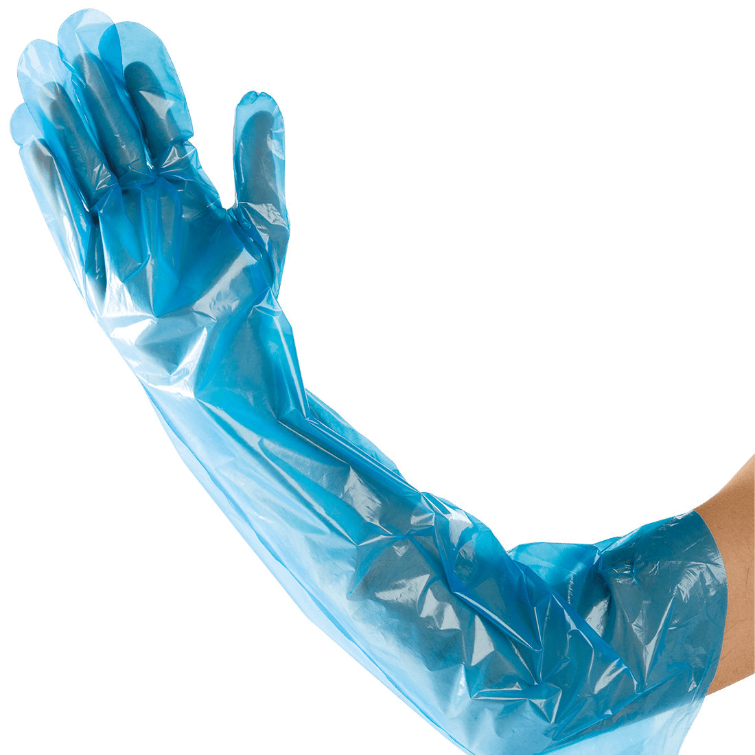 Gloves in 0.02 mm thick polyethylene, length 70 cm. Pack of 1.000 pieces.