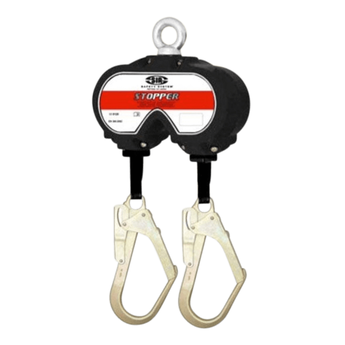 Fall arrest device with aluminium alloy shell, belt width 25 mm, max. 2 m; pivoting anchor system.