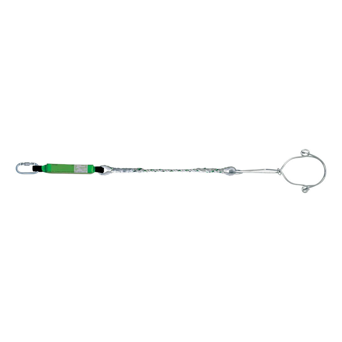 2 m twisted rope lanyard with energy absorber with a Standard karabiner and a Gripmax anchorage hook, 140 mm diameter.