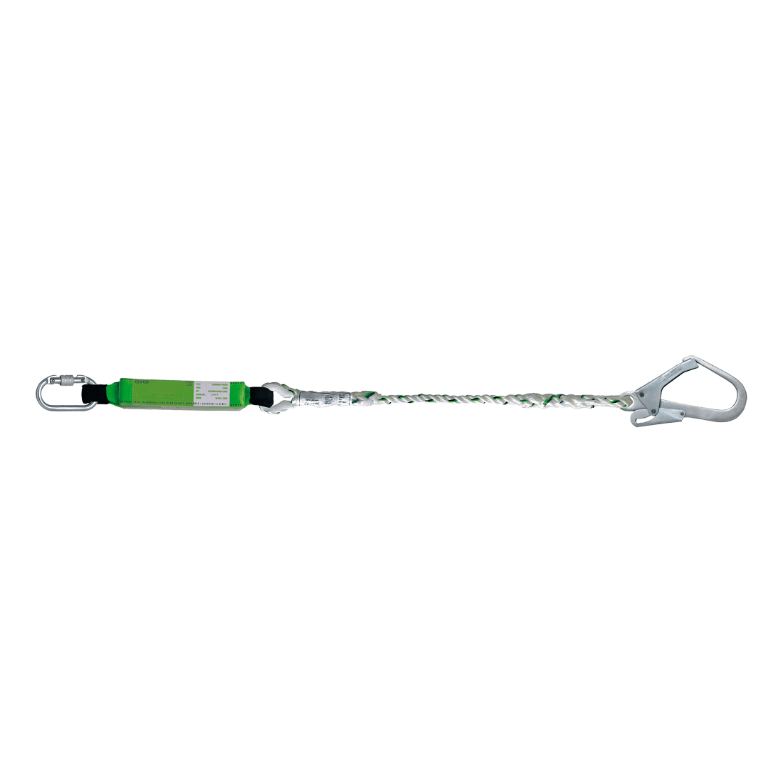 2 m rope lanyard with energy absorber with Standard and Maxitube karabiners.