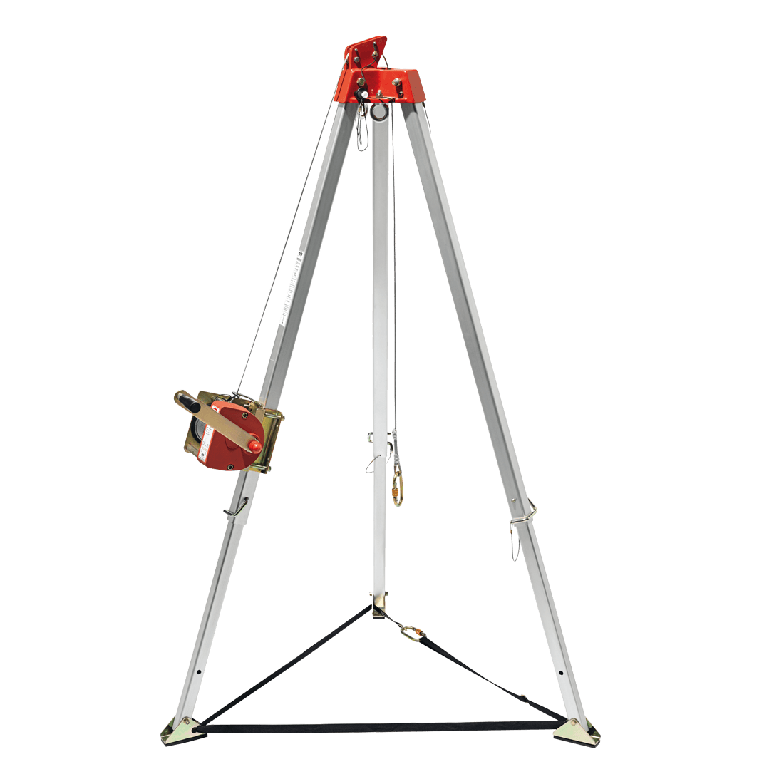Telescopic, tubular aluminium structure with 3 ground standing points. Essential for descent operations into wells, mine shafts or holes otherwise inaccessible. Features a 20 m winch for lifting or lowering a person and relative equipment up to a weight of 500 Kg. The wire-ending is fitted with a karabiner which shall be connected to harnesses with dorsal and sternal attachment points. The Tripod is ideal for the maintenance and inspections of wells, sewers, lifts, etc.; moreover it allows for the rescue of workers who have fainted or who are injured.