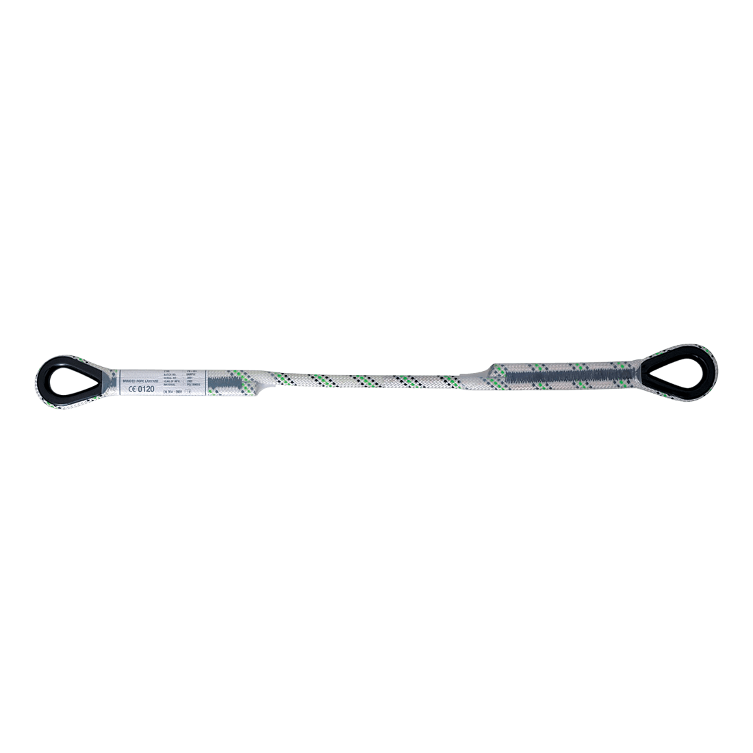 Kernmantel rope lanyard, 2 m long, with 2 side loops.