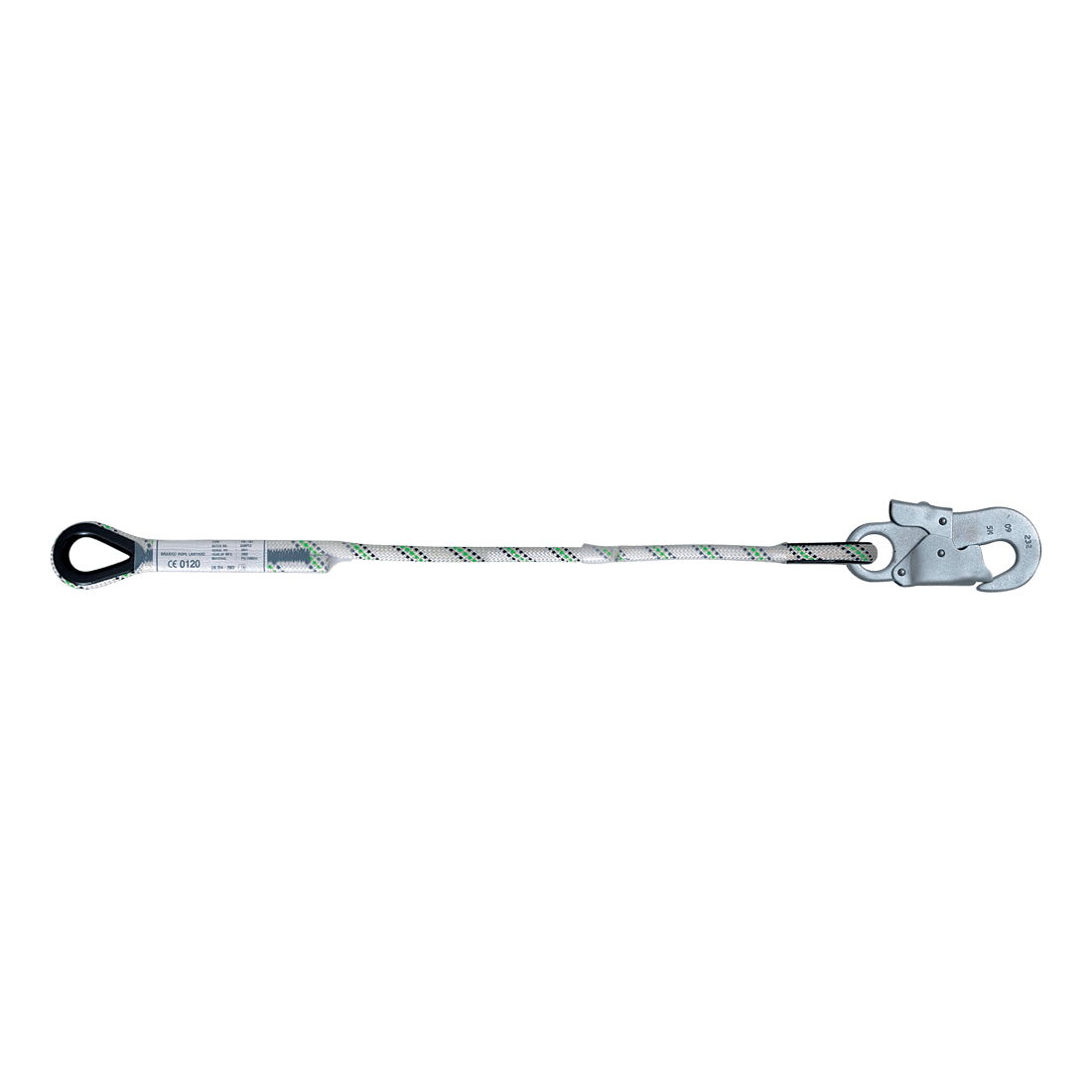 Work positioning Kernmantel rope lanyard, 2 m long, equipped with 1 side loop and 1 Anapurna karabiner.