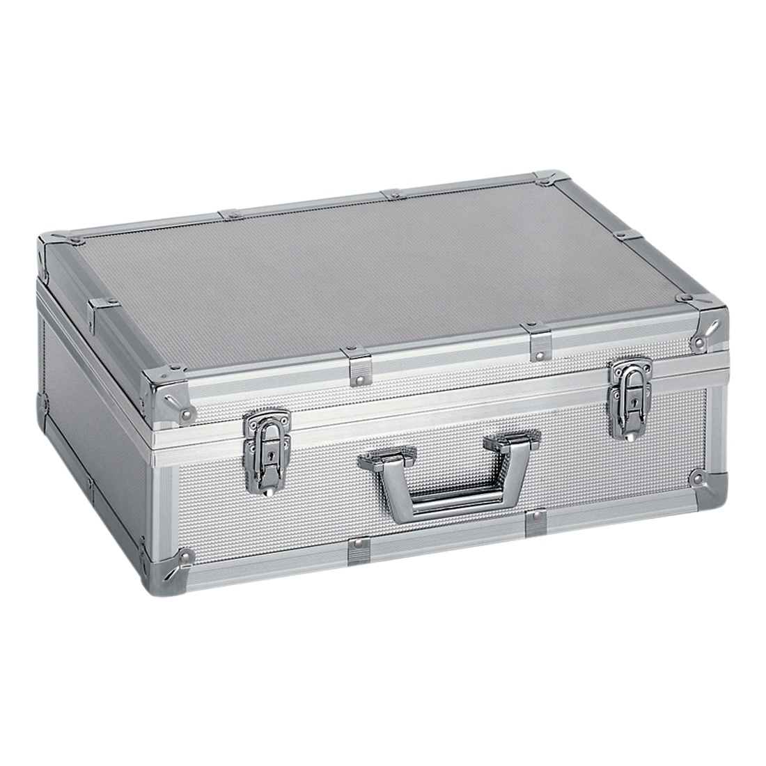 72 hours rigid Aluminium Tool Case, size 55x38x19 cm, with lock and internal compartments.