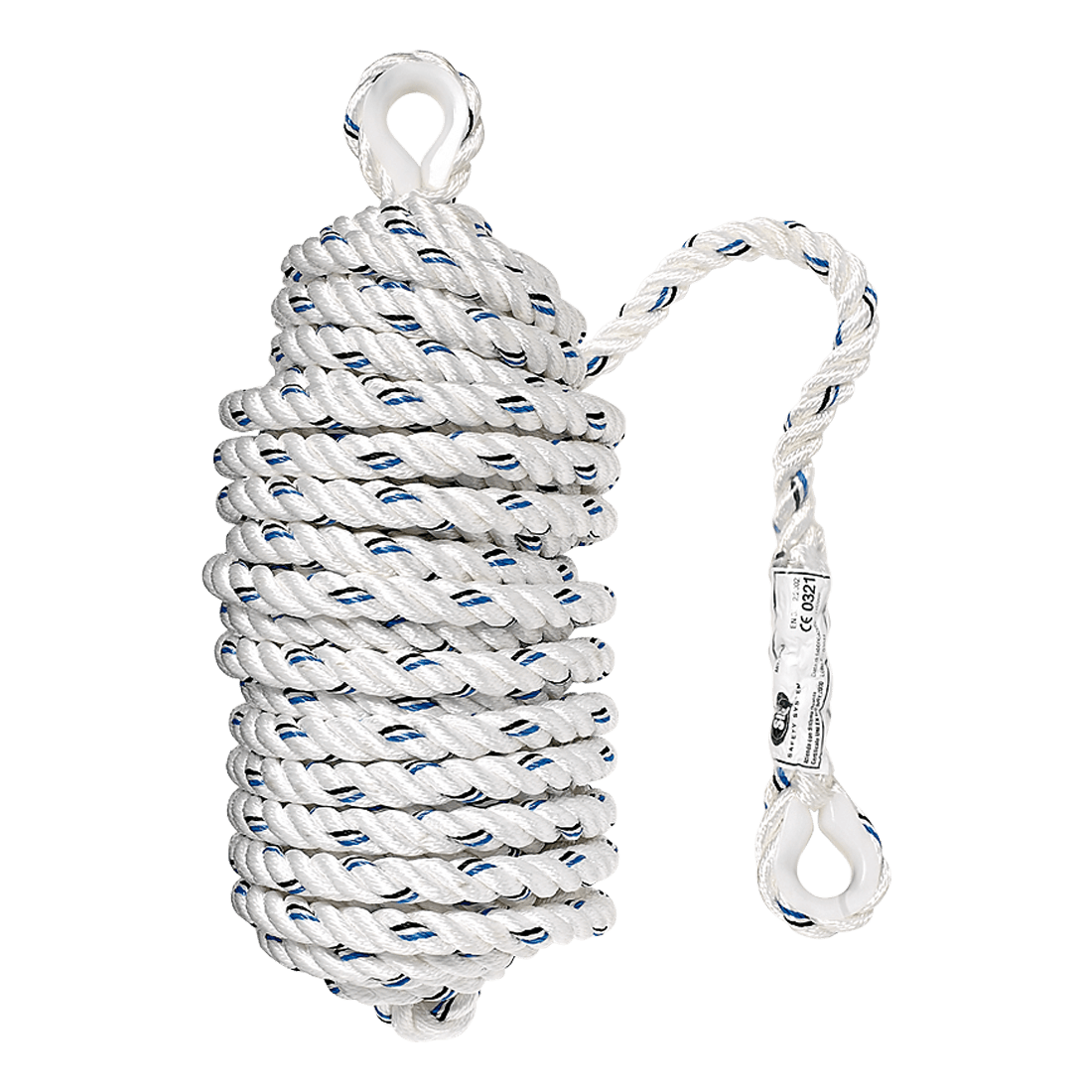 Polyamide triple twisted rope, diameter 15 mm, with side loops.