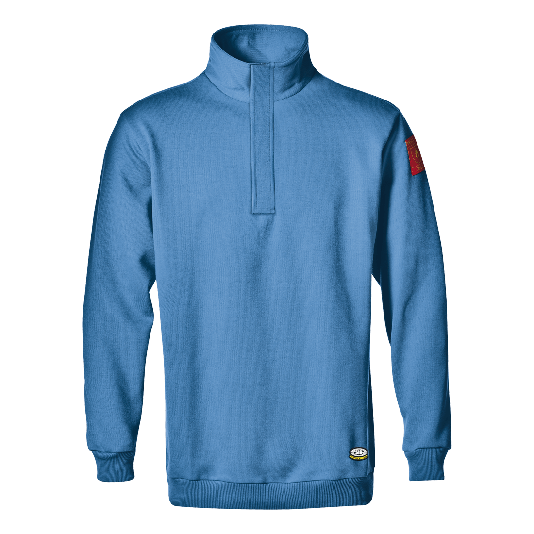 Sweatshirt with turtleneck concealed zipper collar, in 55% modacrylic and 45% cotton, 300 g/m2; knitted cuffs and waistband.