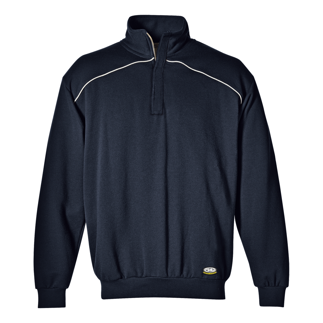 Sweatshirt with zip and long sleeves, in flame retardant fabric composed of 60% protex and 40% cotton, weight 280 g/m2; concealed metal zipper closure, knitted cuffs and waistband, reflective piping on chest.