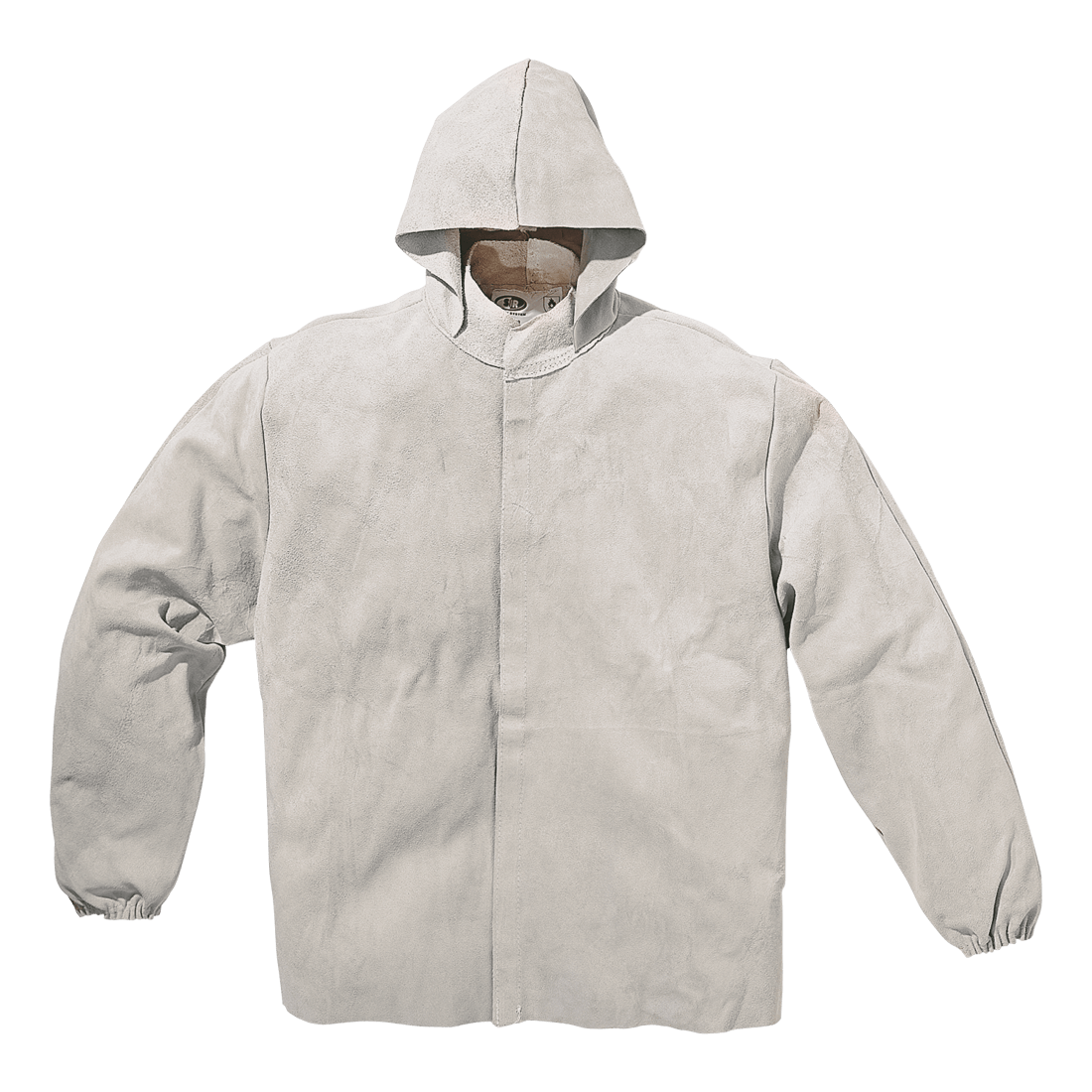 Jacket in 1 mm thickness cowhide split leather, with Velcro closure, elastic cuffs and detachable hood.