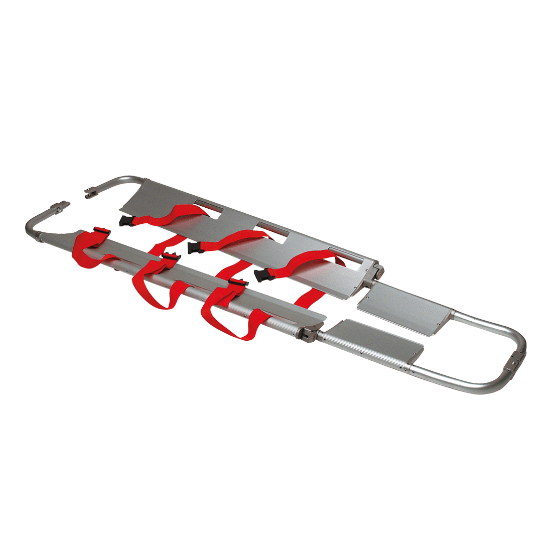 Rescue stretcher specially designed to be placed underneath the injured to ensure complete immobility to avoid further trauma. Totally made of anodized aluminium. Features a regulated length easy lock system. Supplied with 3 quick release buckle belts. Non-slip surface.
