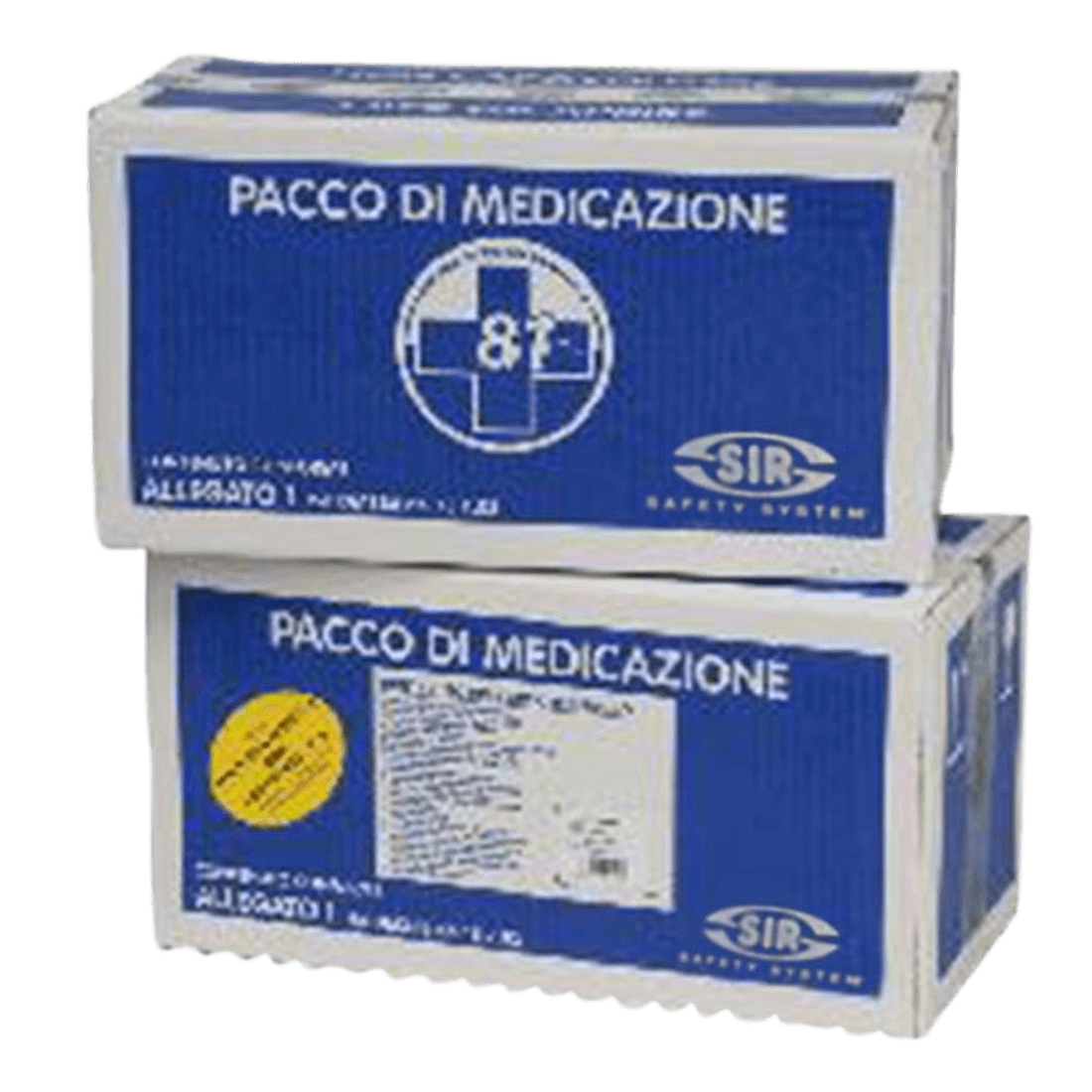 Supplies kit for Medibag 1 (case not included). The contents can be used as part of the HACCP. First aid items required by D.M. 388 attachment 2 and DL 81 09/4/08 art.45.