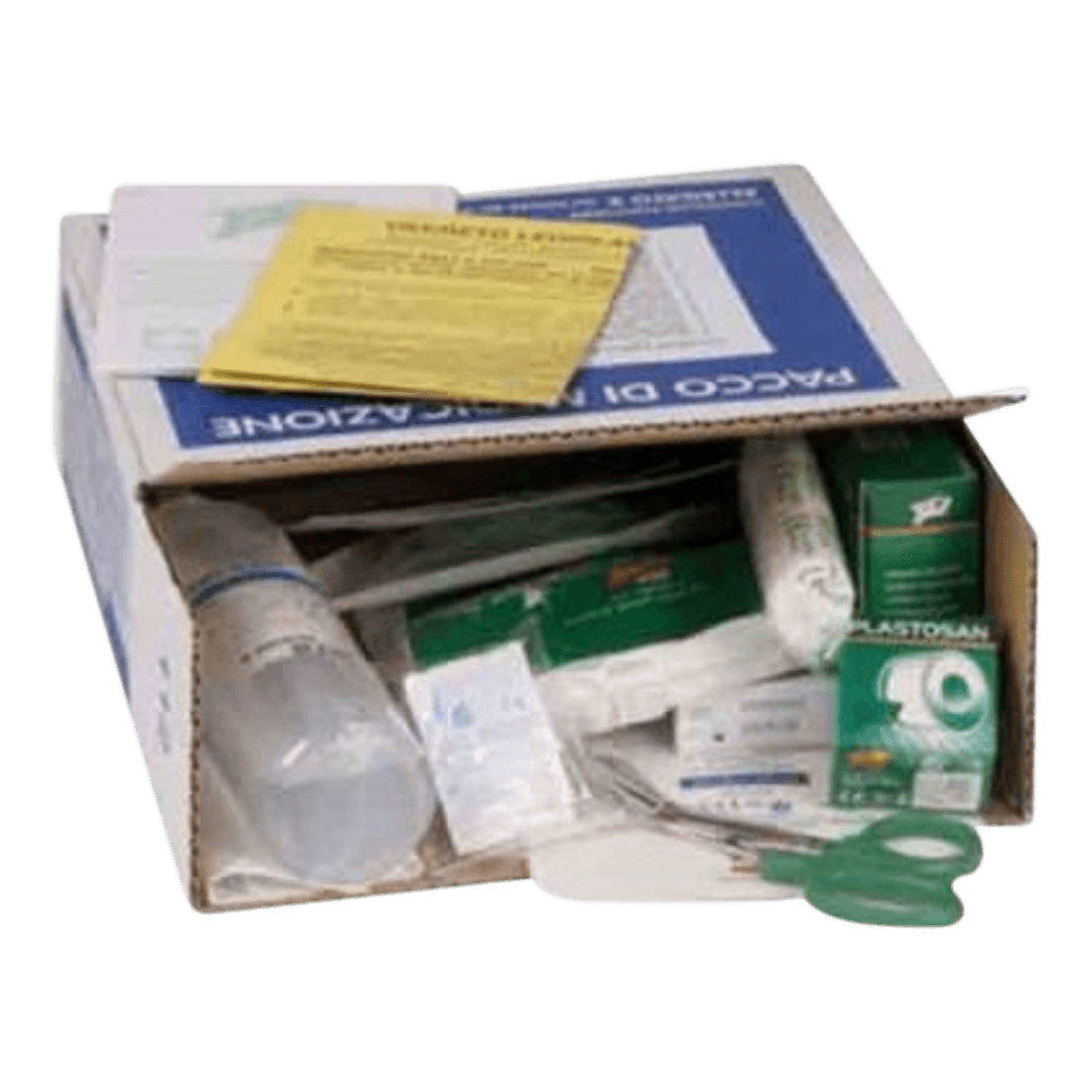Supplies kit for Medibag 1 (case not included). First aid items required by D.M. 388 attachment 2 and DL 81 09/4/08 art.45.