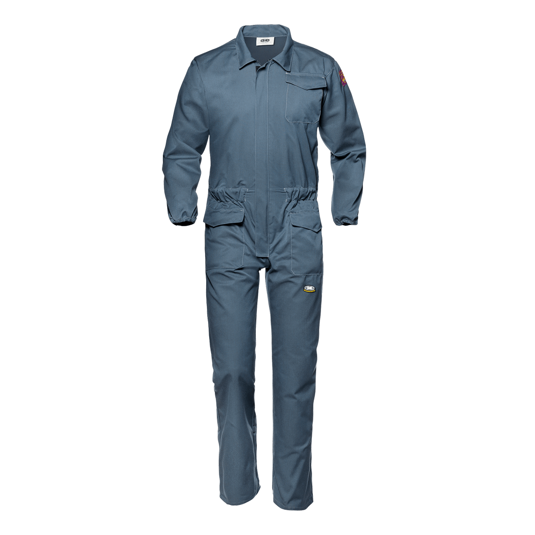 Coverall in meraclon fabric 100% polypropylene, weight 220 g/m2, with concealed two - way zipper closure with flap and velcro; elastic cuffs and waistband, front pockets and chest pocket with flap and Velcro.