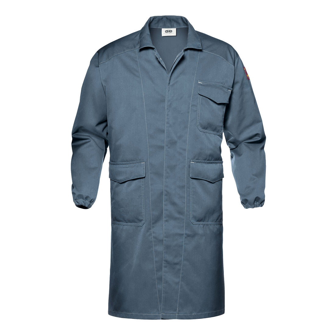 Coat with shirt collar, straight sleeves and elastic cuffs; concealed button closure with flap, one chest pocket and two lower pockets with flap and Velcro.
