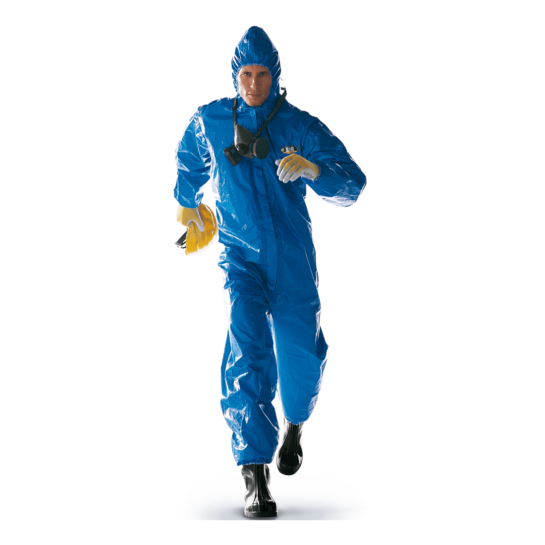 Coverall in SMS and polyethylene multilayer material, 90 g/m2, it features a concealed zipper closure with double adhesive flap and elastic hood, cuffs and ankles; collar area with an additional adhesive band, reinforced material on the knees. The coverall offers a good resistance thanks to the multilayer material and an excellent chemical and bacteriological protection guaranteed by taped seams.