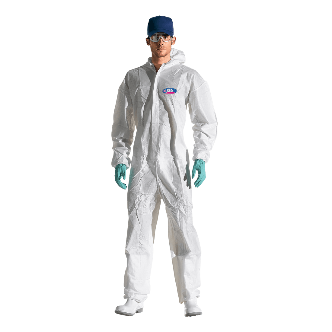 Coverall in high density polypropylene with mechanical protection properties and tear resistance, coupled with a breathable microporous film,it is repellent against dusts, mists and splashes. Concealed two-way zipper closure with adhesive flap and elastic hood, cuffs and ankles, double taped seams. Antistatic properties.