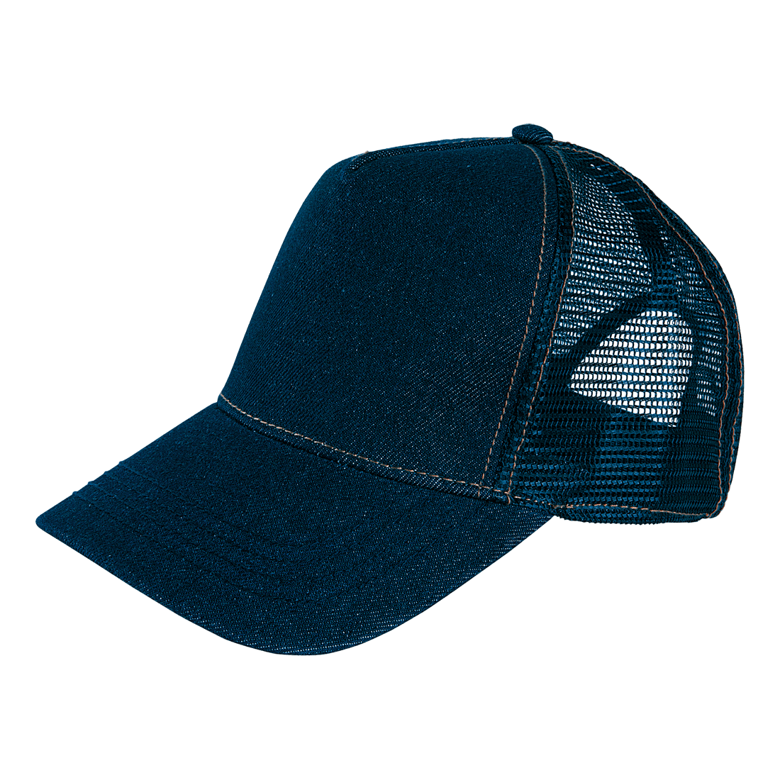 Baseball style cap in jeans fabric; side and rear area are in polyester mesh, providing superior breathability.