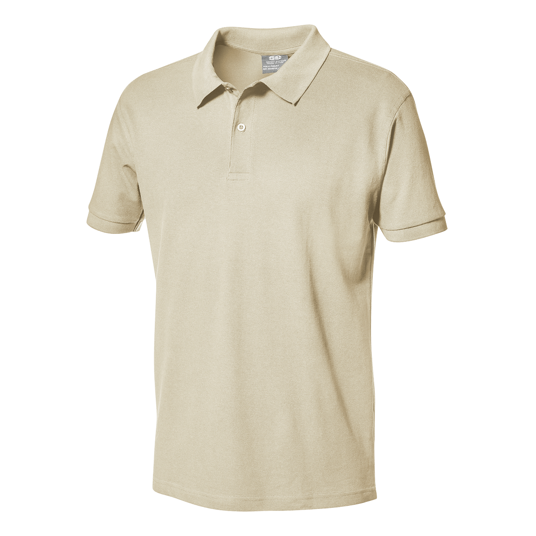 Short-sleeved polo shirt made of 100% cotton piquet, 190 g/m2, collar with buttons, sleeves with elastic knitted trim, seam puckering on the collar and double stitched seam on the shoulders and around the sleeves.