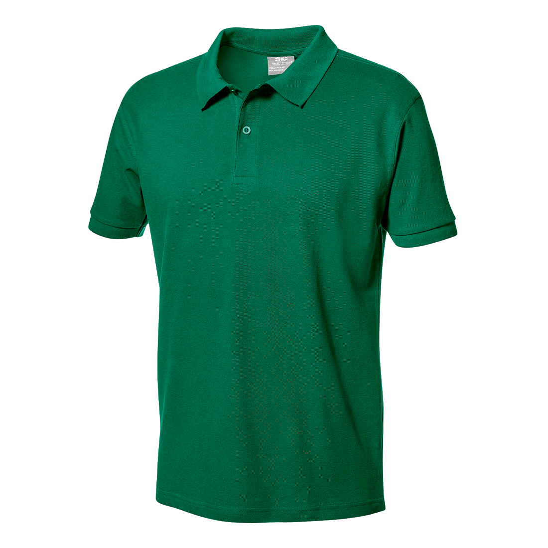 Short-sleeved polo shirt made of 100% cotton piquet, 190 g/m2, collar with buttons, sleeves with elastic knitted trim, seam puckering on the collar and double stitched seam on the shoulders and around the sleeves.