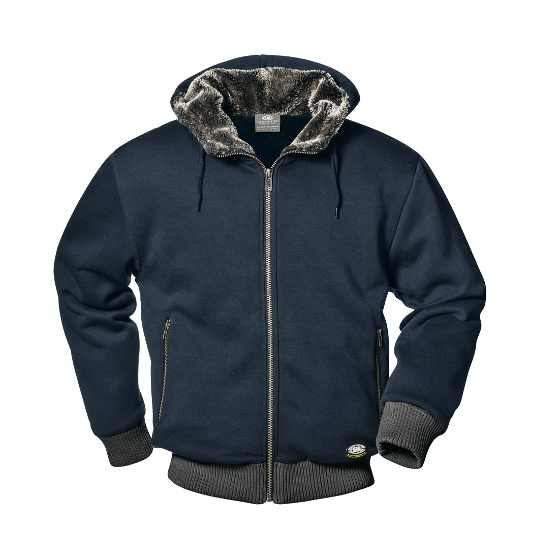 Outer fabric made of 60% cotton, 40% polyester, 330 g/m2, with Teflon treatment; inner padding (body and hood) made of 100% polyester 600 g/m2 eco-friendly fur lining. It features a metal zipper closure, hood with drawstring, two pockets with a metal zip and an inner pocket with Velcro.
