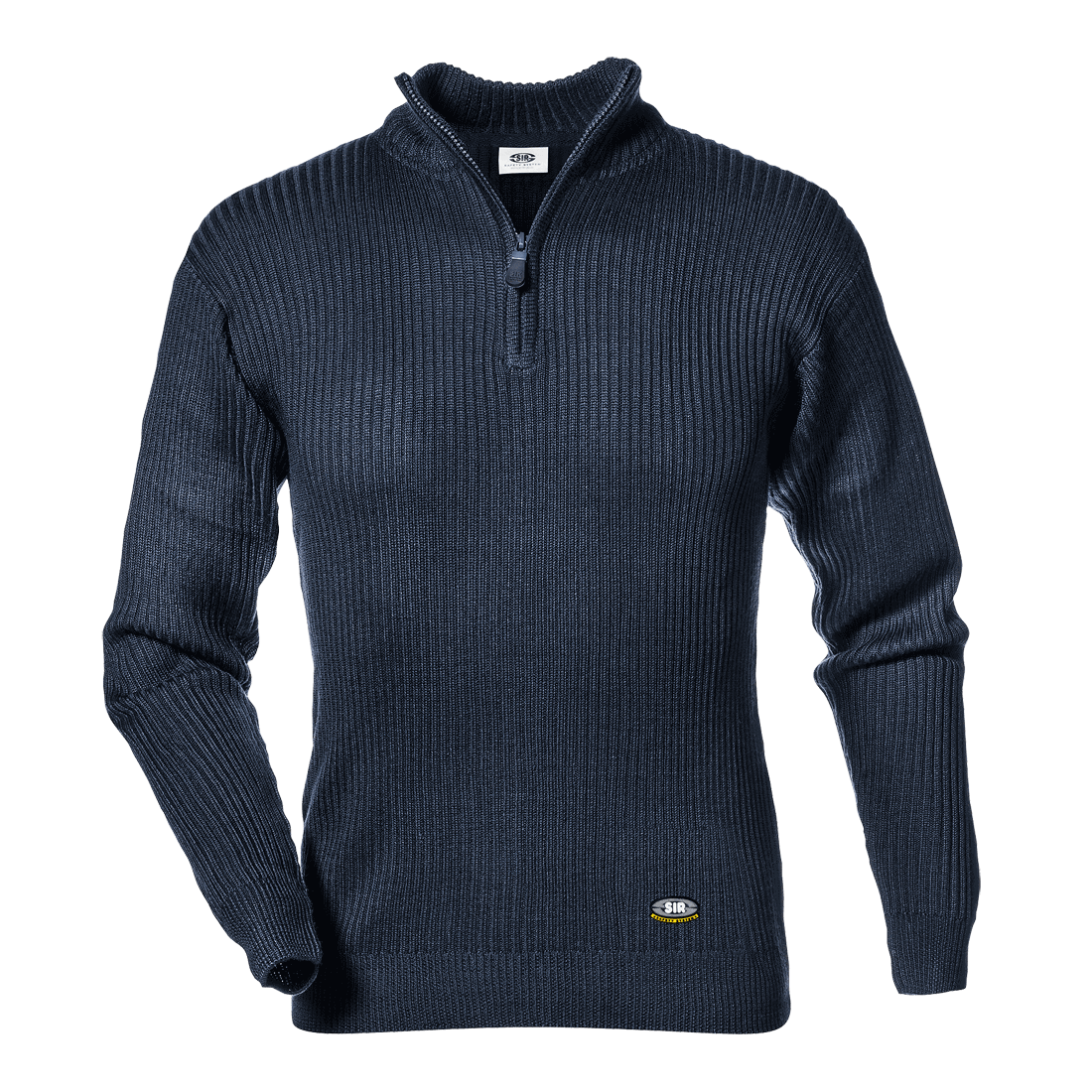 Pullover made of 50% wool-50% acrylic, 650 g/m2, ribbed knitted fabric with stretch effect. Collar with zip and elastic knitted cuffs.