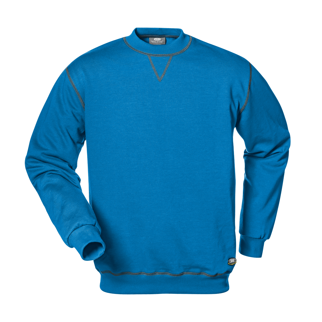 Sweatshirt made of 50% cotton-50% polyester, 280 g/m2, round neck collar with trimming on inner seams, elastic knitted cuffs and waistband, chain stitched seams in a contrasting colour.