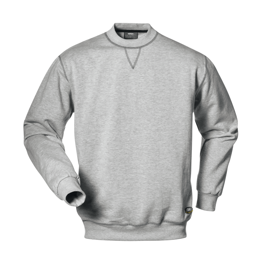 Sweatshirt made of 50% cotton-50% polyester, 280 g/m2, round neck collar with trimming on inner seams, elastic knitted cuffs and waistband, chain stitched seams in a contrasting colour.