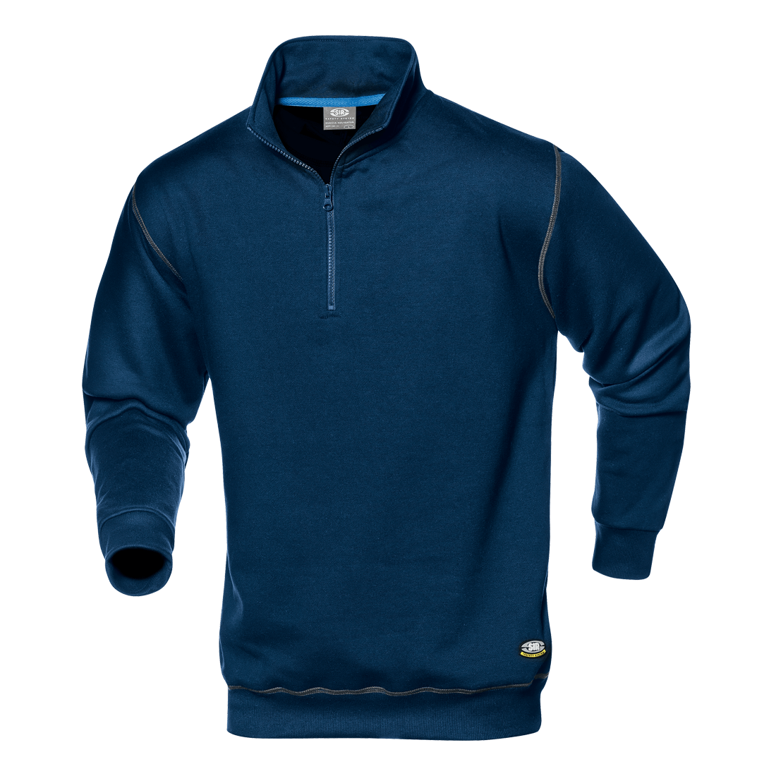 Sweatshirt made of 50% cotton-50% polyester, 280 g/m2, collar with zipper closure and trimming on inner seams, elastic knitted cuffs and waistband. Chain stitched seams in contrasting colour.