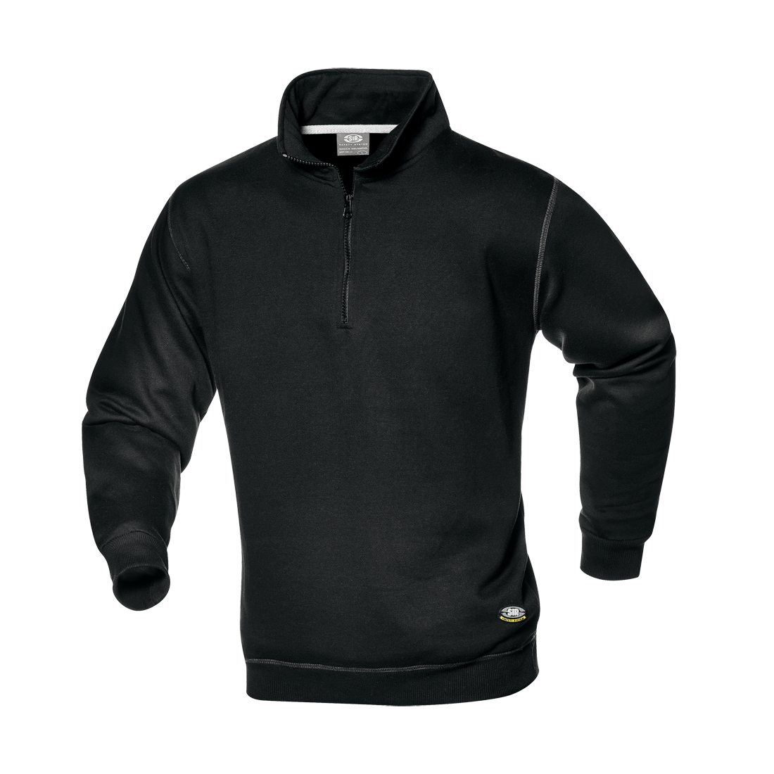 Sweatshirt made of 50% cotton-50% polyester, 280 g/m2, collar with zipper closure and trimming on inner seams, elastic knitted cuffs and waistband. Chain stitched seams in contrasting colour.