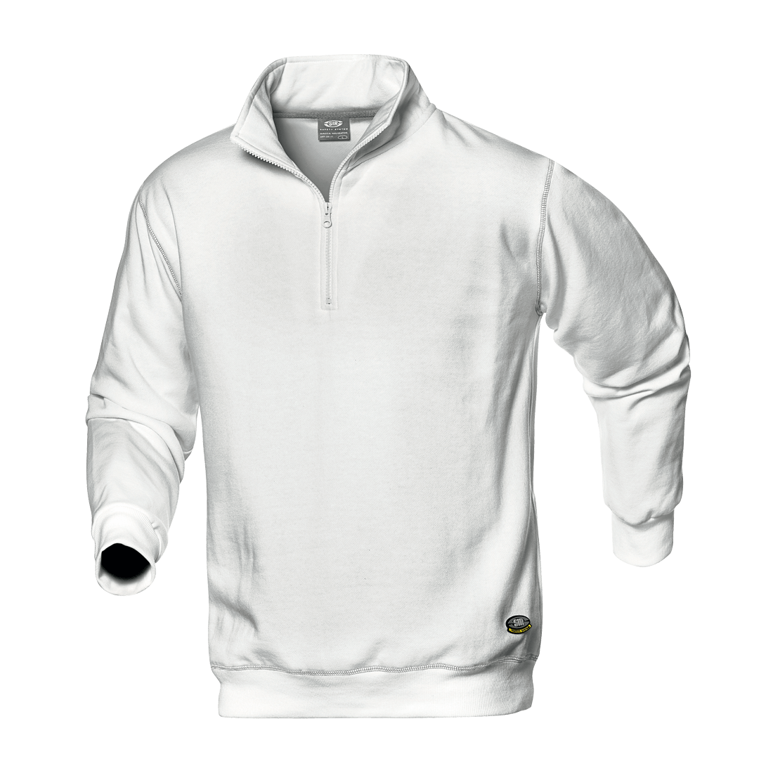 Sweatshirt made of 50% cotton-50% polyester, 280 g/m2, collar with zipper closure and trimming on inner seams, elastic knitted cuffs and waistband. Chain stitched seams in contrasting colour.