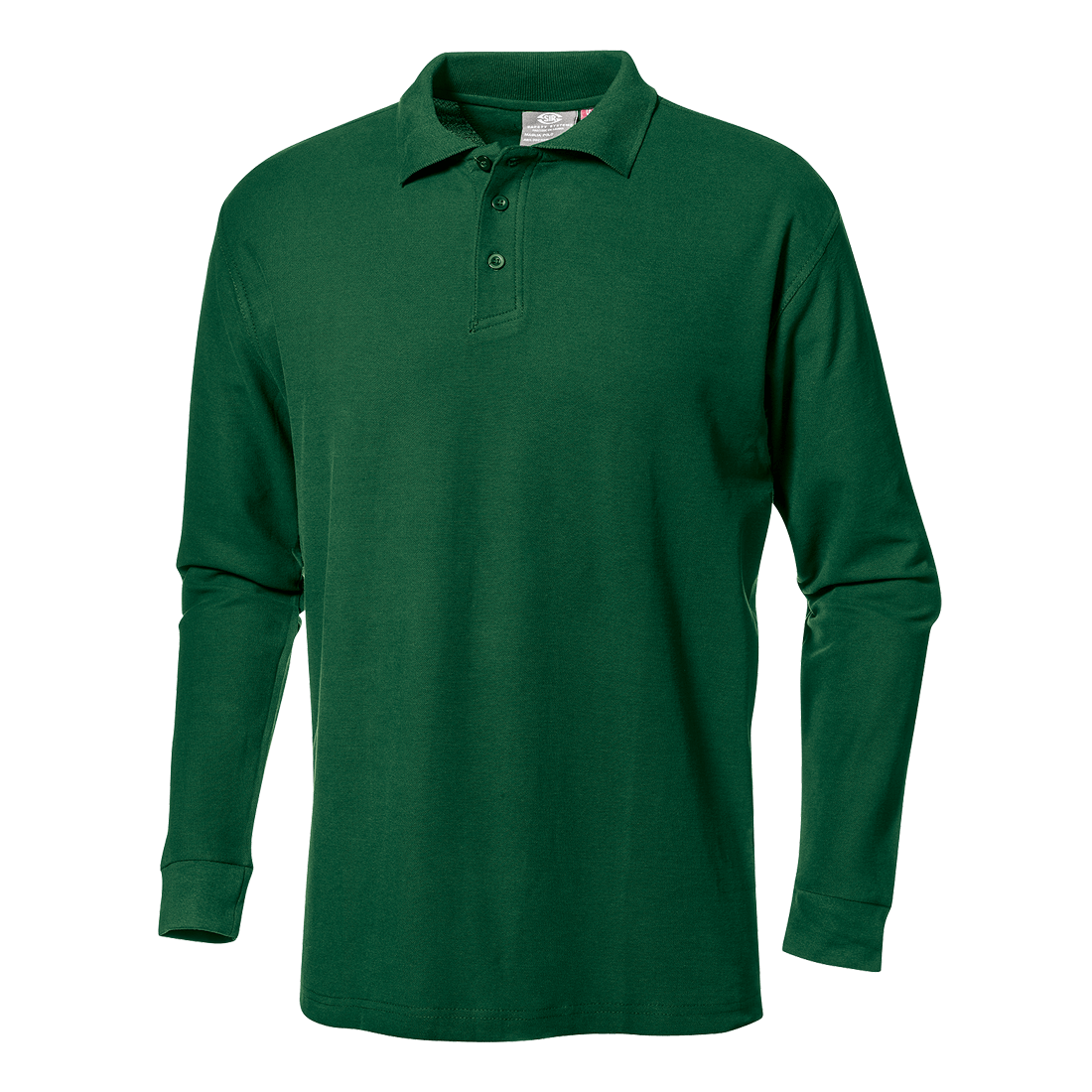 100%蜂窩凸紋全棉布長袖POLO衫,克重200g/m2,帶紐扣領口,彈性針織袖口,領口肩膀和袖口雙重縫合接縫。長袖T恤適合保護下手臂,簡潔舒適,有四種顏色可供選擇。
