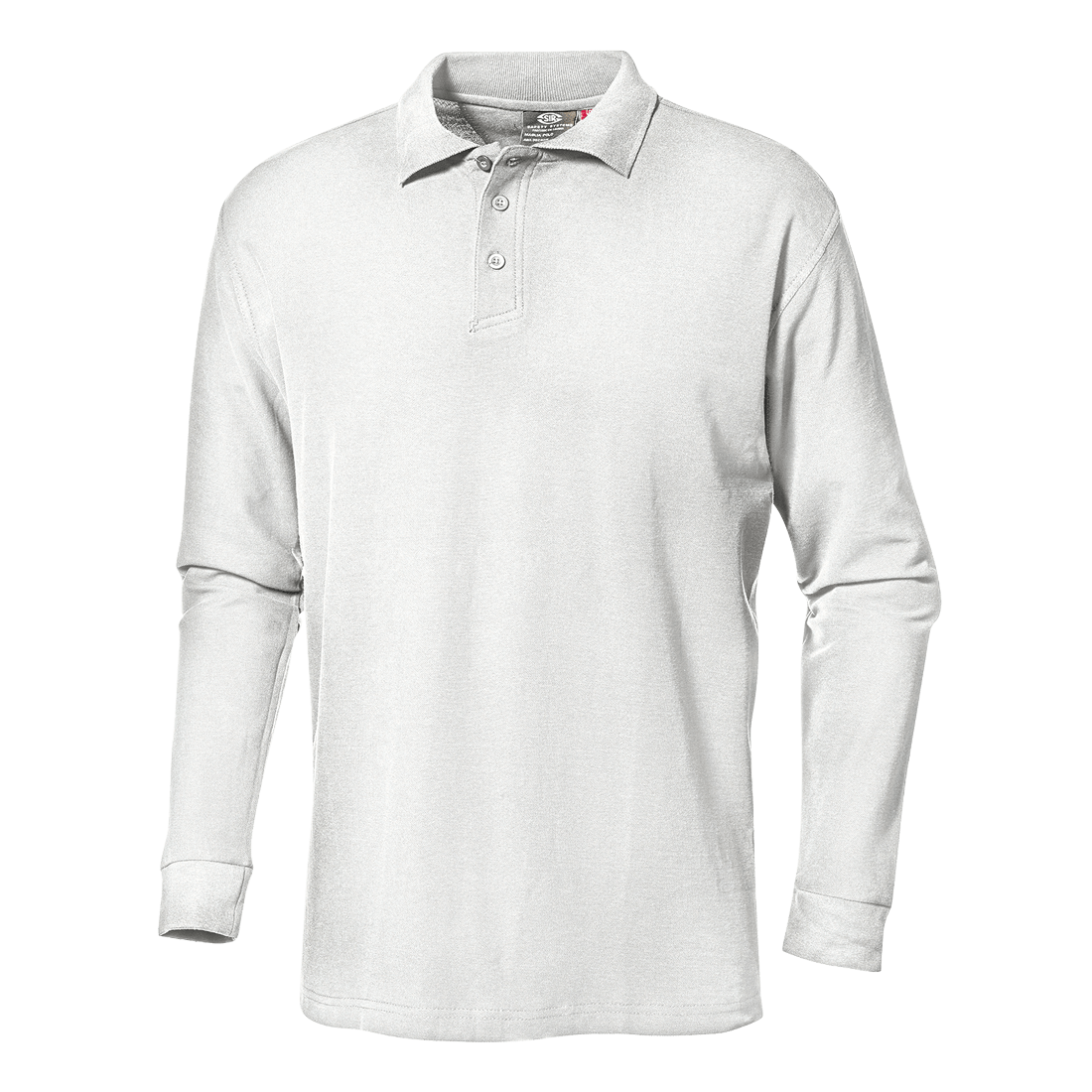 100%蜂窩凸紋全棉布長袖POLO衫,克重200g/m2,帶紐扣領口,彈性針織袖口,領口肩膀和袖口雙重縫合接縫。長袖T恤適合保護下手臂,簡潔舒適,有四種顏色可供選擇。