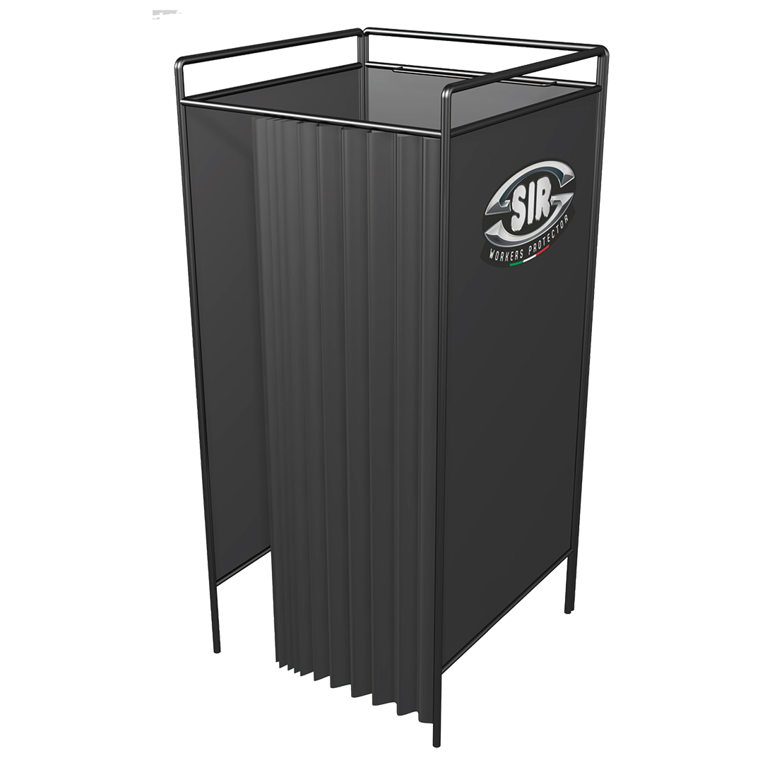 Steel structure with sliding curtain and three lacquered panels. Including grey coconut mat and two hangers for clothes.