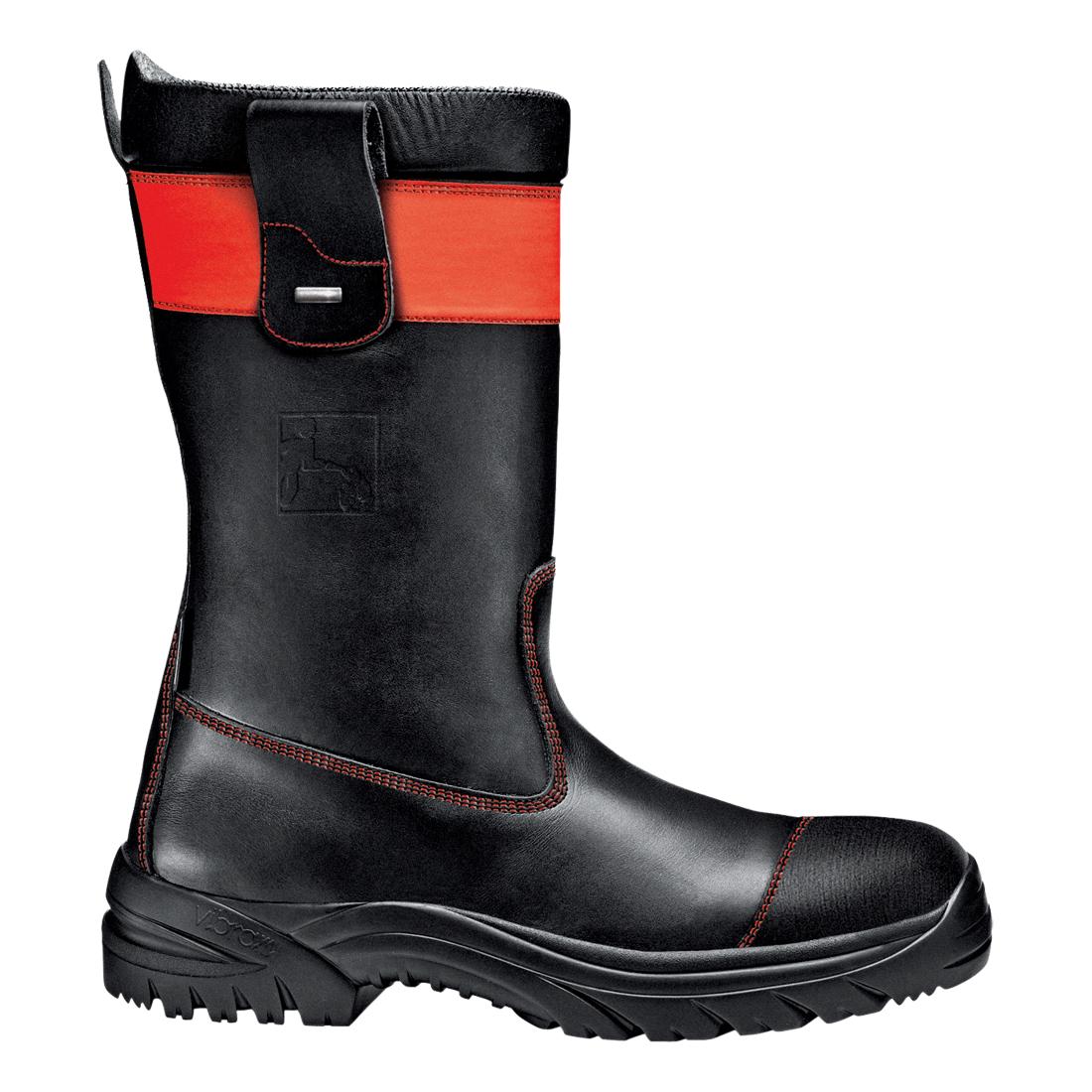 Firefighter boot with outsole in vulcanized monodensity rubber; it features a 200 joule composite toecap and Zero Penetration midsole, heat resistant outsole, full grain leather upper, front part of upper with Bycast leather reinforcement for greater resistance and durability. Puratex waterproof membrane lining.