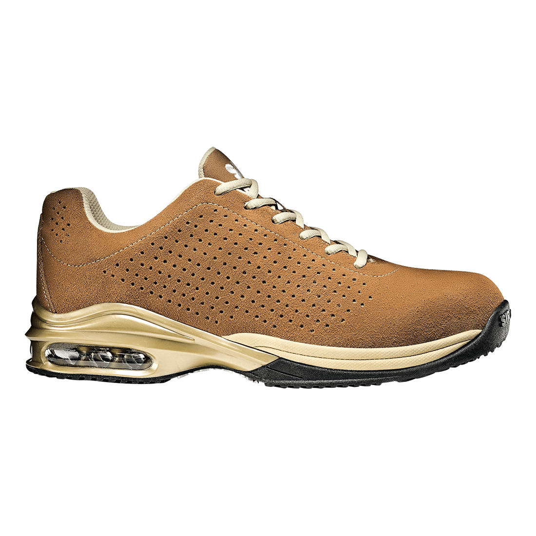 Low shoe with 200 joule composite toecap and Zero Penetration midsole. Suede leather upper, perforated, totally lined.
