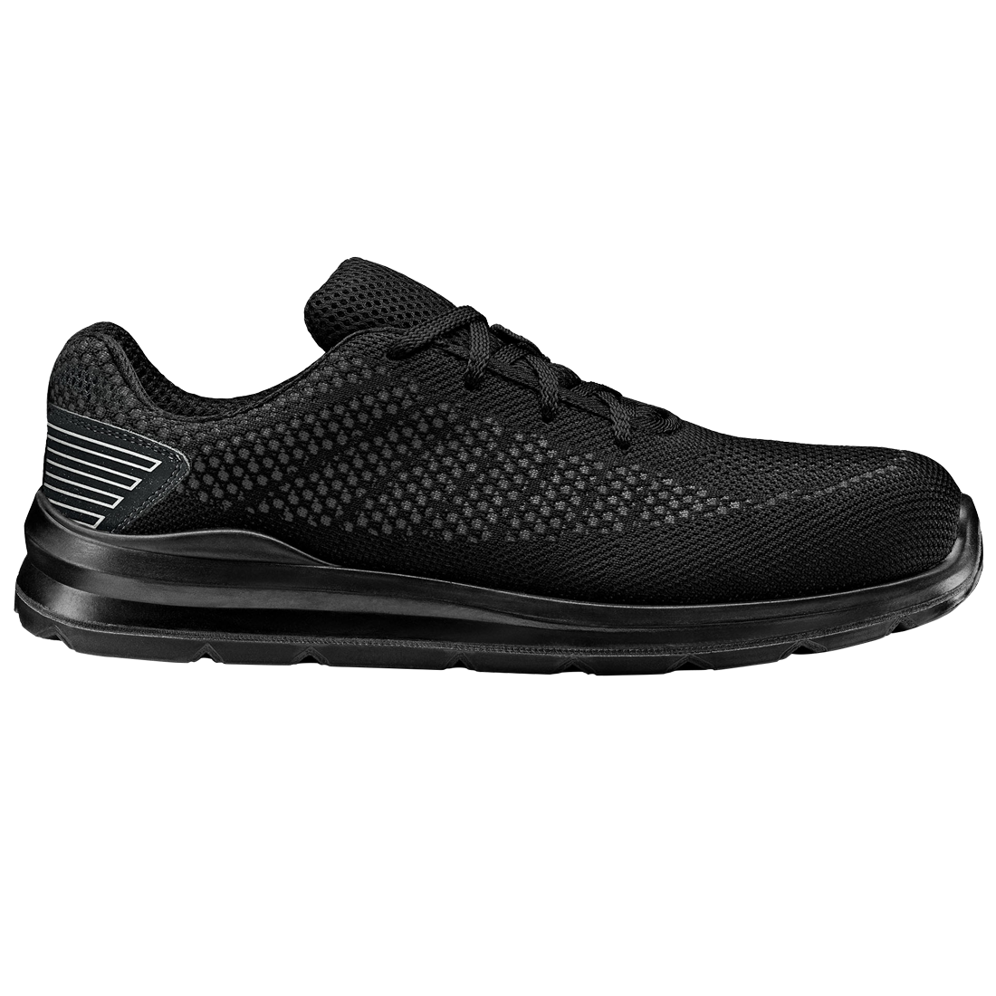 低幫安全鞋復合材料包頭耐壓可達200Joule的沖擊,復合材料中底。透氣網布面料和皮革鑲拼鞋面。PU鞋底,鞋頭較寬,任何腳型穿著都會非常舒適。通過防滑SRC標準