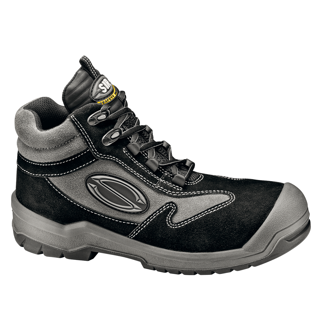 Ankle high shoe, with 200 joule composite toecap and Zero Penetration midsole. Upper in suede leather and overcap for an extra protection on the toe area.