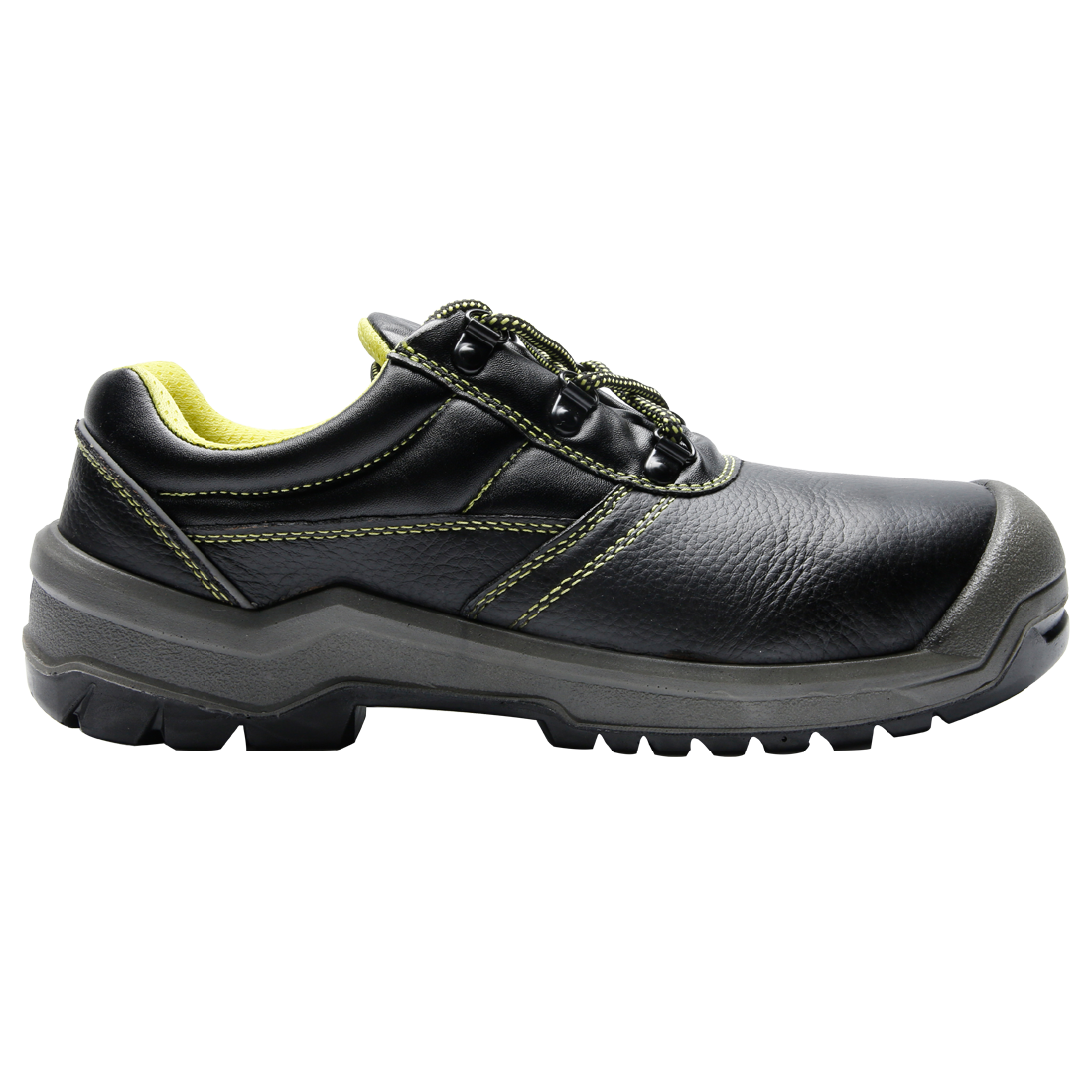 低幫安全鞋玻璃纖維包頭耐壓可達(dá)200Joule的沖擊,復(fù)合材料防刺穿中底,牛皮鞋面。