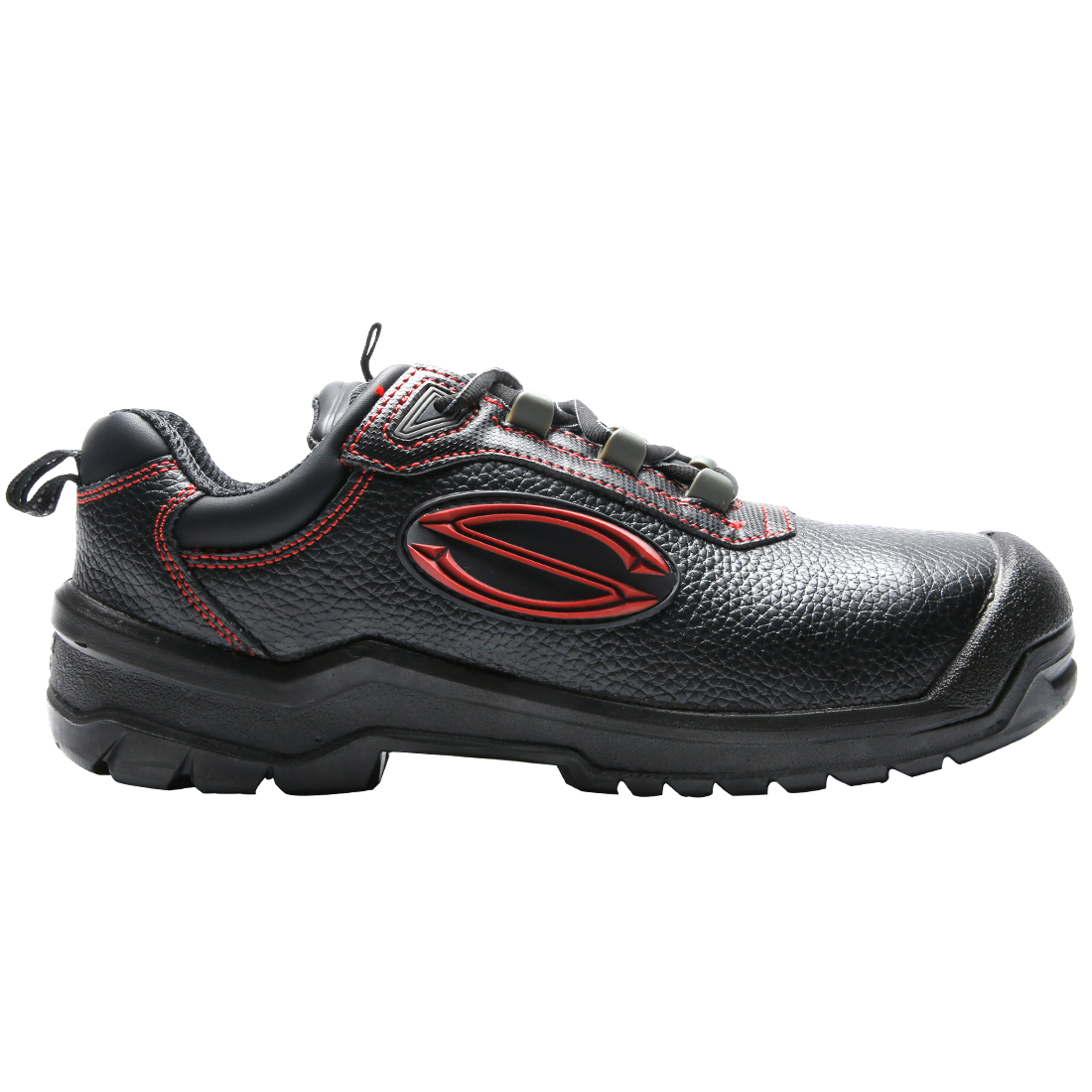 低幫安全鞋玻璃纖維包頭耐壓可達200Joule的沖擊,復合材料防刺穿中底,6kV絕緣,全粒面牛皮鞋面。