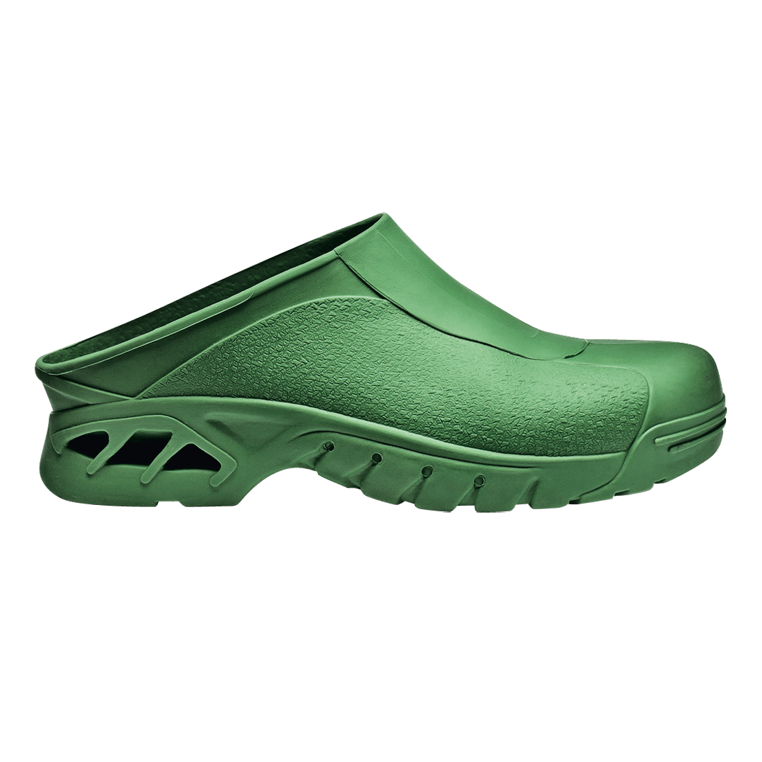 Monolithic polyurethane clog, washable in autoclave at 134°C/70 min. No Safety.