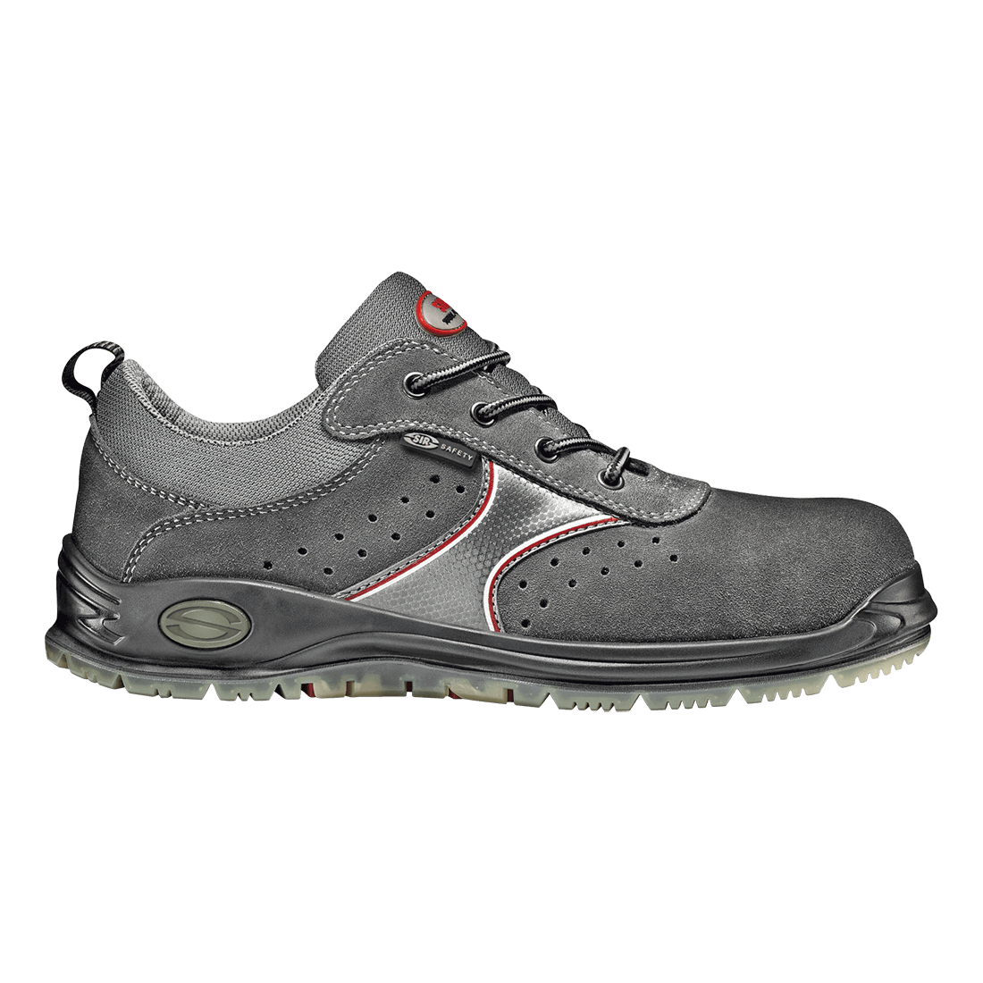 低幫安全鞋復合材料包頭耐壓可達200Joule的沖擊,零穿刺復合材料中底。帶透氣孔反絨皮鞋面。