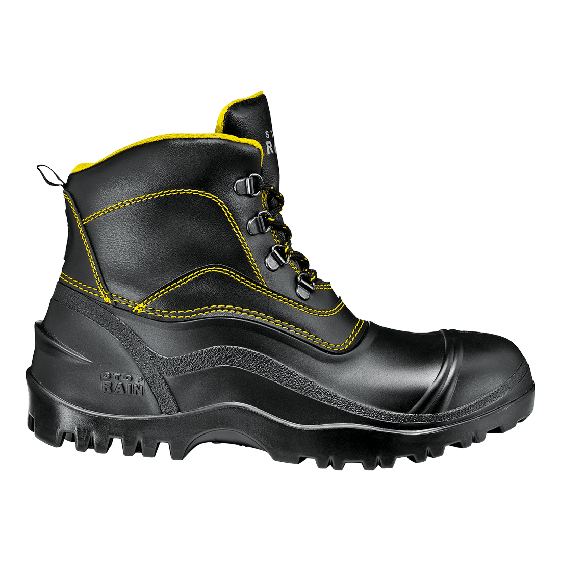 Ankle high shoe with steel toecap and steel midsole. Nitrile-PVC outsole and upper, antistatic, anti-slip, polyester lining.