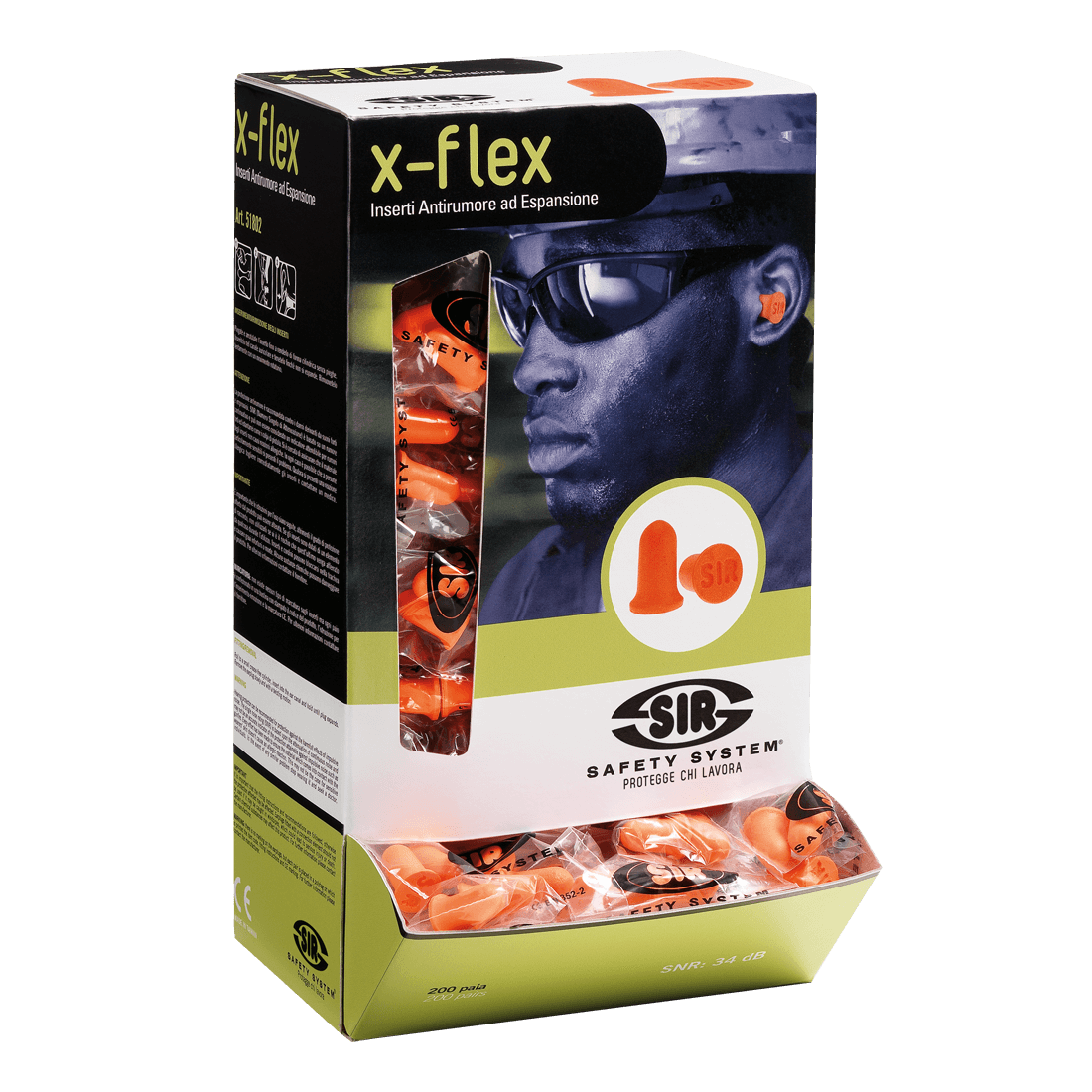 Soft disposable earplugs in polyurethane foam, 23 mm long. Box of 200 pairs in single polybag.