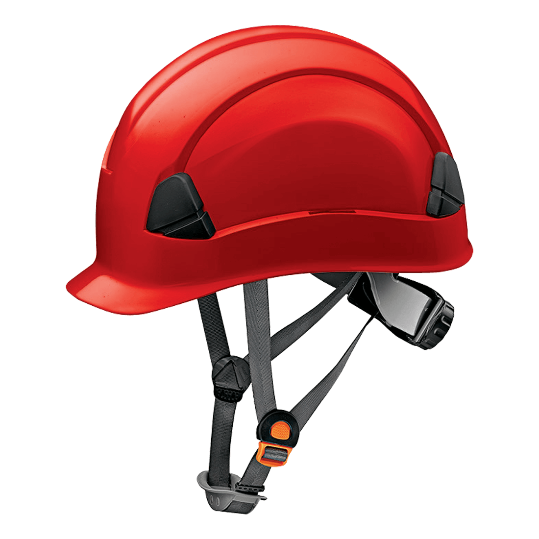 Helmet in ABS with polyethylene textile 6-point head harness. With slots for attaching earmuffs, 4-point adjustable chinstrap with chincup. Ratchet easy adjustment for sizes from 52 to 63 cm. Resistance to low temperatures down to -30° C. Weight: 470 g.
