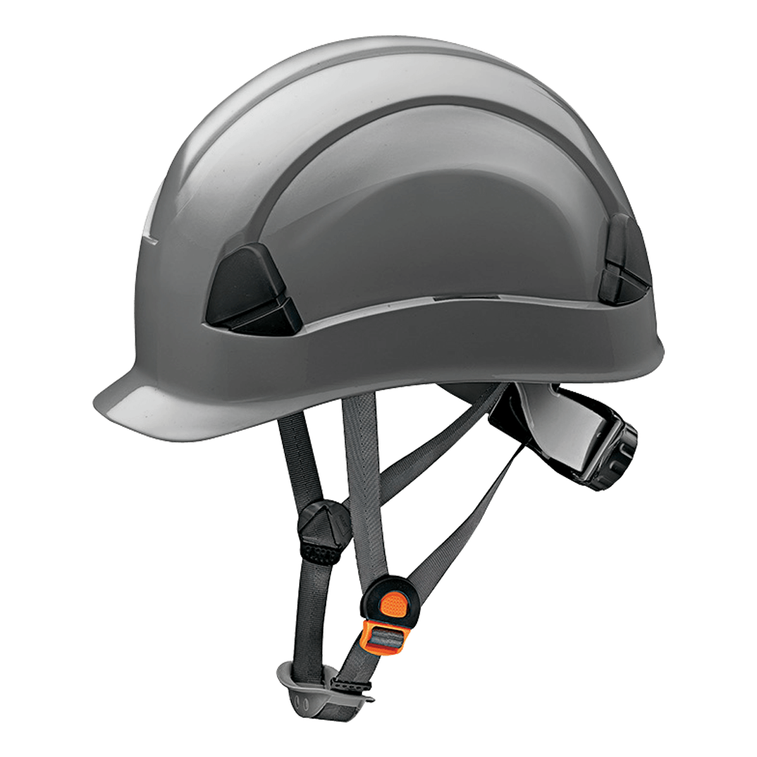 Helmet in ABS with polyethylene textile 6-point head harness. With slots for attaching earmuffs, 4-point adjustable chinstrap with chincup. Ratchet easy adjustment for sizes from 52 to 63 cm. Resistance to low temperatures down to -30° C. Weight: 470 g.