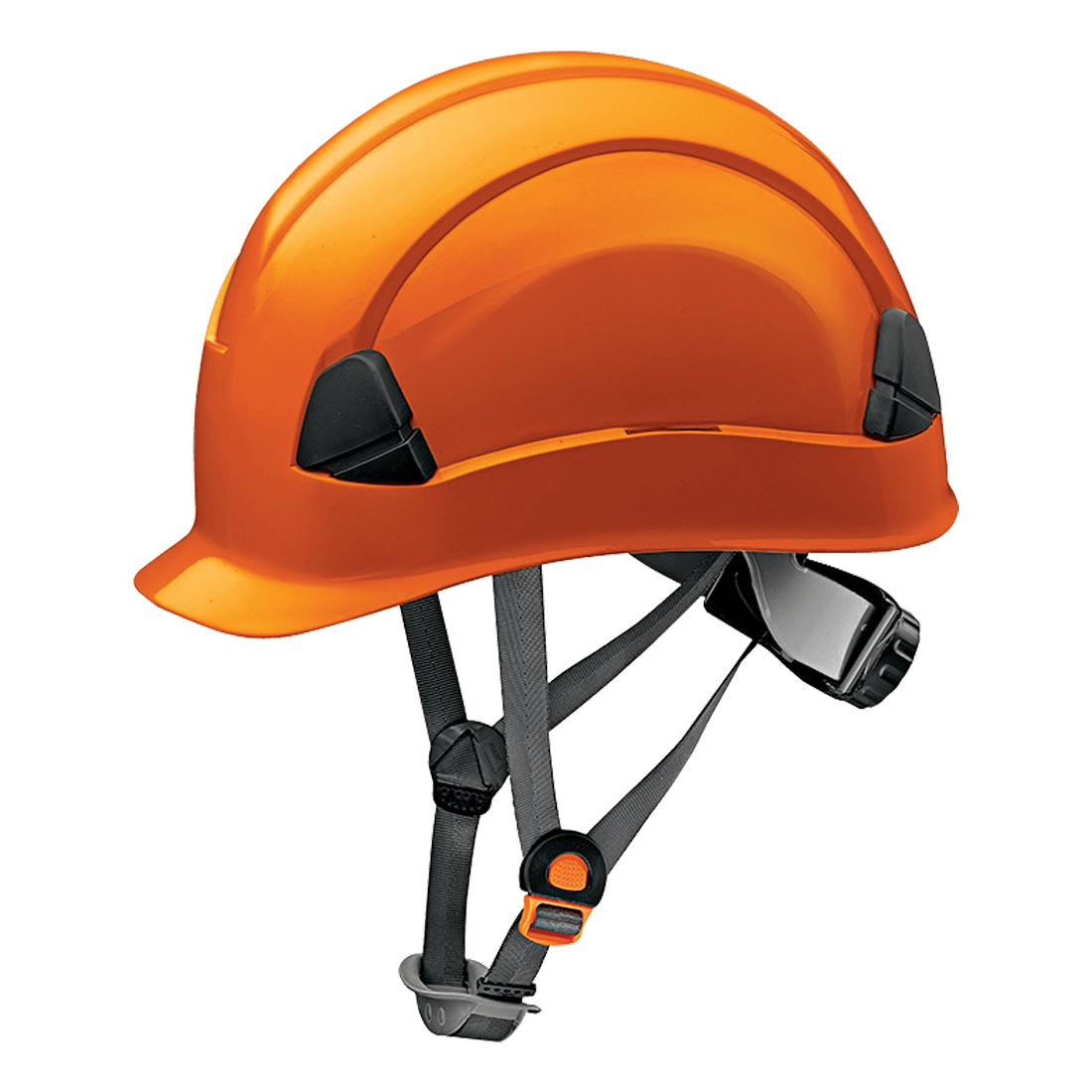 Helmet in ABS with polyethylene textile 6-point head harness. With slots for attaching earmuffs, 4-point adjustable chinstrap with chincup. Ratchet easy adjustment for sizes from 52 to 63 cm. Resistance to low temperatures down to -30° C. Weight: 470 g.