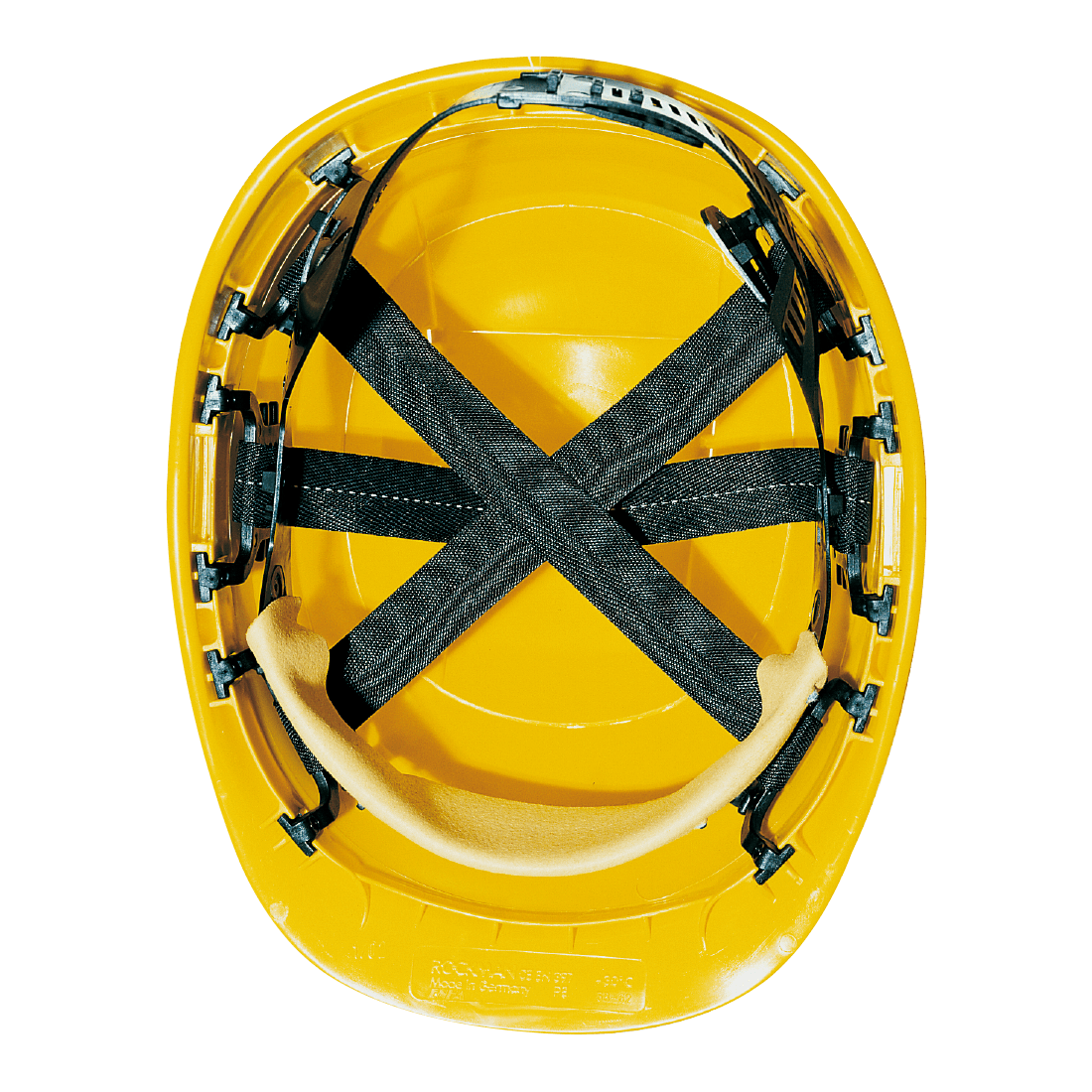 Polyethylene helmet with a 6-point polyethylene head harness. It features twelve ventilation holes, more rigid and stronger faceted surface, scratch-proof shell finish and replaceable front sweatband. Slots for earmuffs, chinstrap attachment and flat front for logo personalization. Resistant down to -30°C.