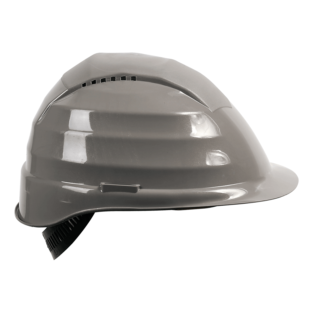 Polyethylene helmet with a 6-point polyethylene head harness. It features twelve ventilation holes, more rigid and stronger faceted surface, scratch-proof shell finish and replaceable front sweatband. Slots for earmuffs, chinstrap attachment and flat front for logo personalization. Resistant down to -30°C.