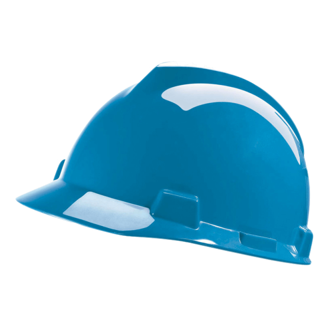Helmet made of UV stabilised high density polyethylene (HDPE), with Staz-On 4-point head harness and textile straps with ratchet wheel adjustment, for increased stability. Incorporated slots for hearing and face protection.
